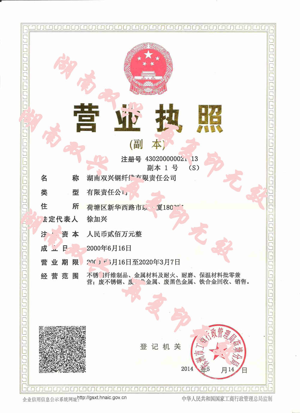 湖南雙興鋼纖維有限責(zé)任公司
